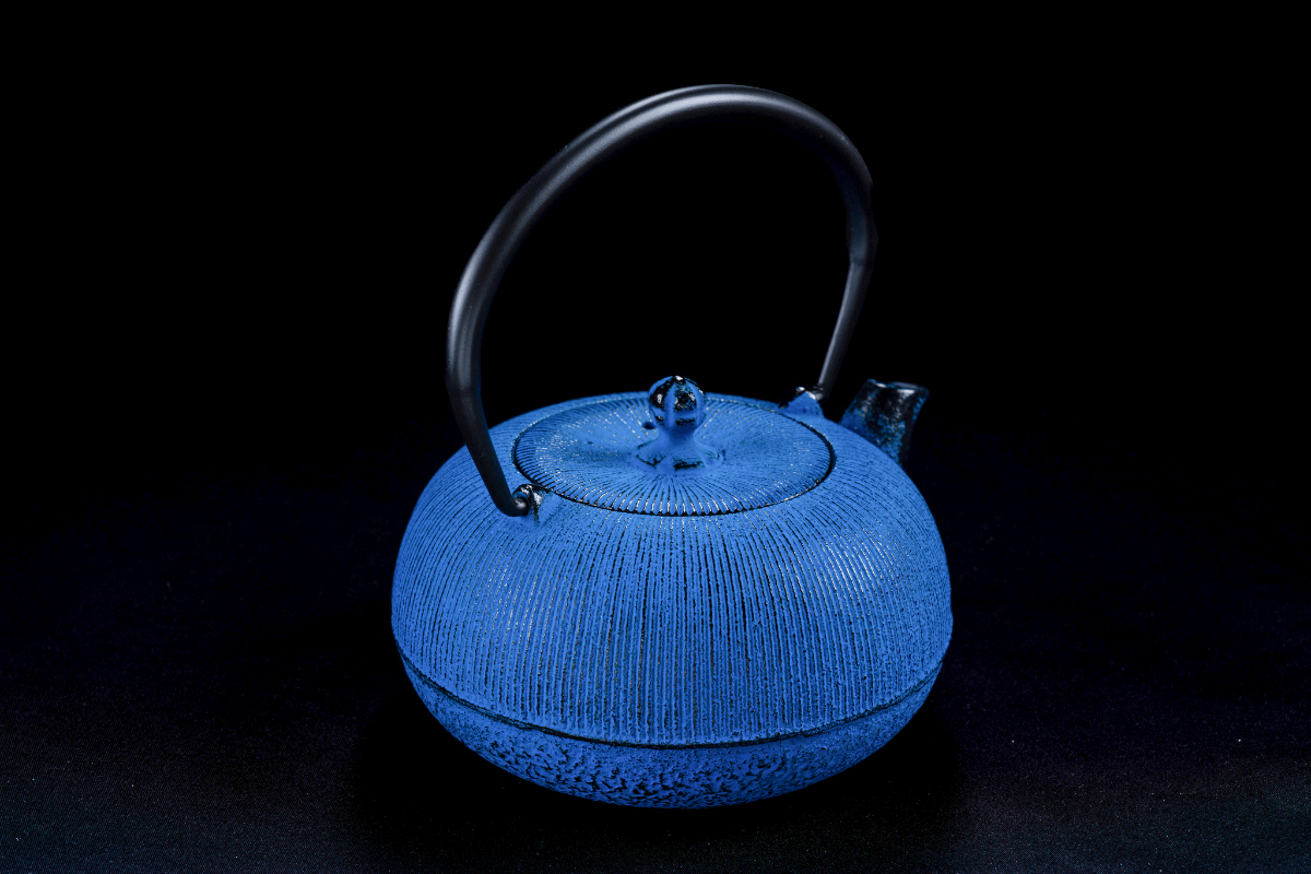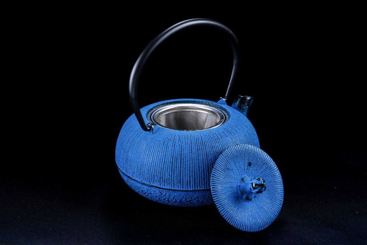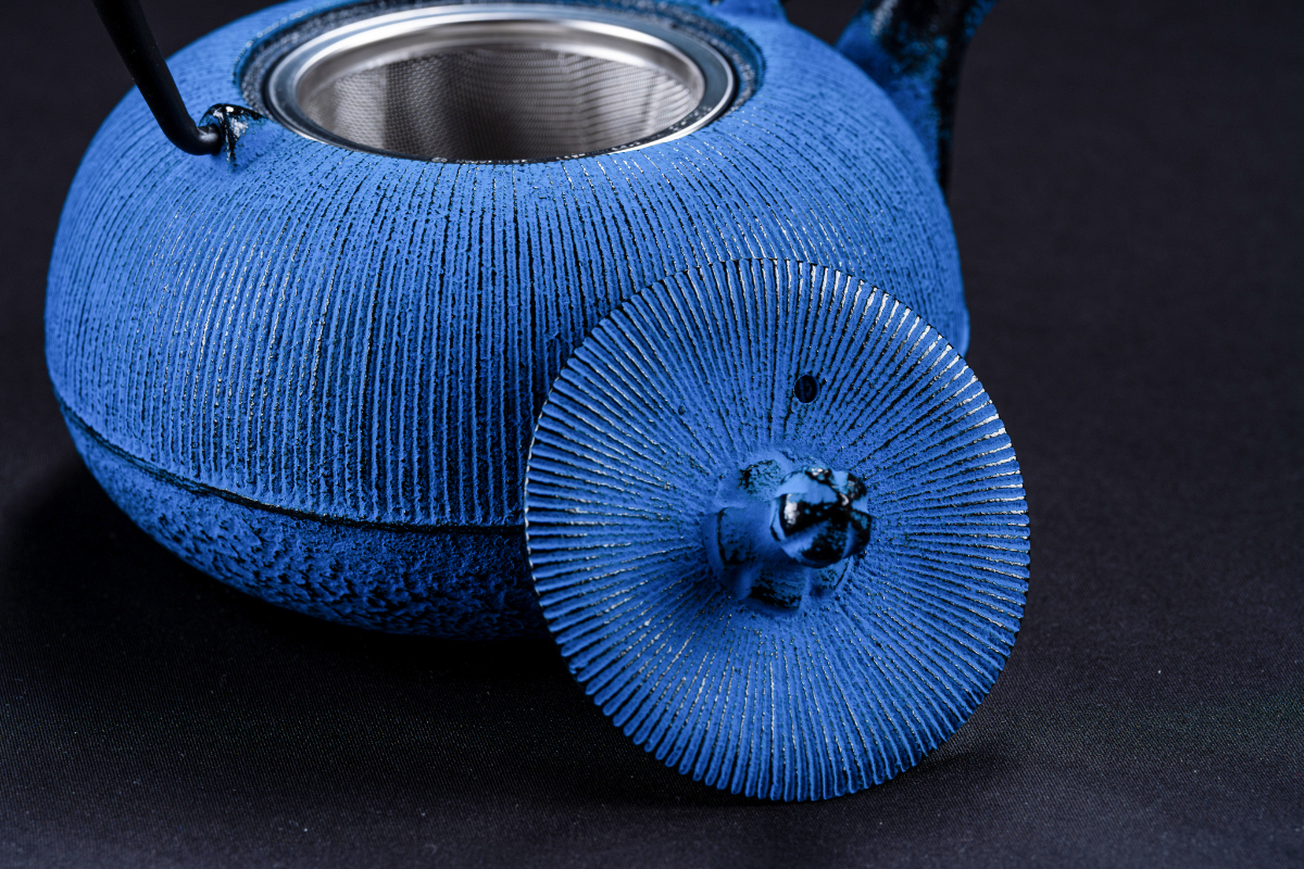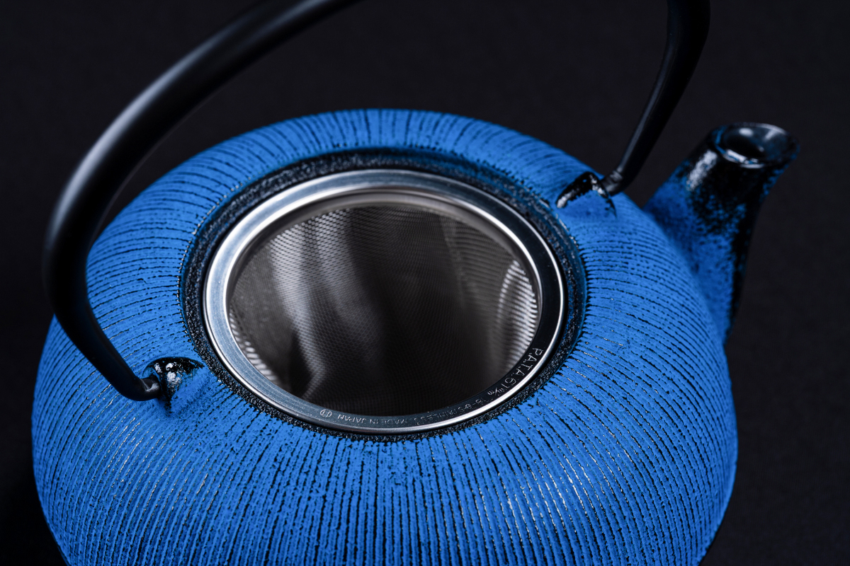 IWACHU 急須 5型線引 0.65L <茶こし付内面ホーロー> ダマン青色
